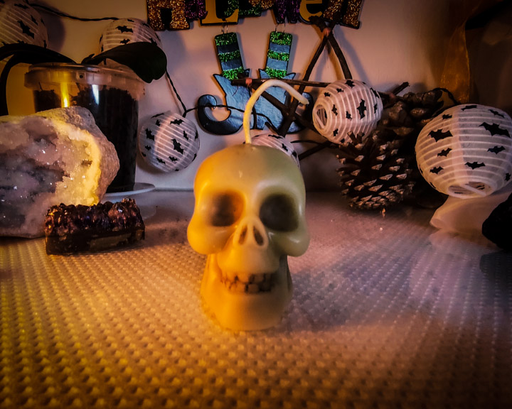 No puede haber temporada más escalofriante sin esqueletos y calaveras por todos lados. Así que, ¿Qué mejor manera de decorar la casa esta temporada que con motivos escalofriantes como Calaveras, Zombies y Calabazas? Y por eso aquí tenemos nuestra vela decorativa de calavera para Halloween.